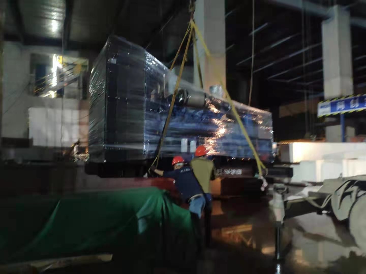 晚上12點(diǎn)多,歐蘭德的技術(shù)人員不辭辛苦的運(yùn)輸1200KW發(fā)電機(jī)到場調(diào)試安裝